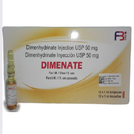 Presentación: : Inyección 50mg/1ml por ampolla Uso: Es usado para tratar y prevenir las náuseas, vómitos y mareos causados por viajes o cualquier otro tipo de afección relacionado con el vómito. Dosis: Según recomendación médica