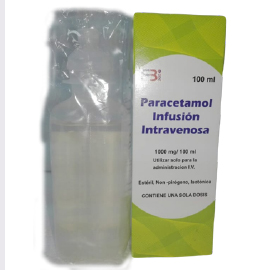 Presentación: FCO 1000mg/100ml Uso: está indicado en el tratamiento a corto plazo del dolor moderado, especialmente después de cirugía y para el tratamiento a corto plazo de la fiebre, cuando la administración por vía intravenosa está justificada por una necesidad urgente de tratar el dolor o la fiebre, y/o cuando no son posibles otras Dosis: Según recomendación médica